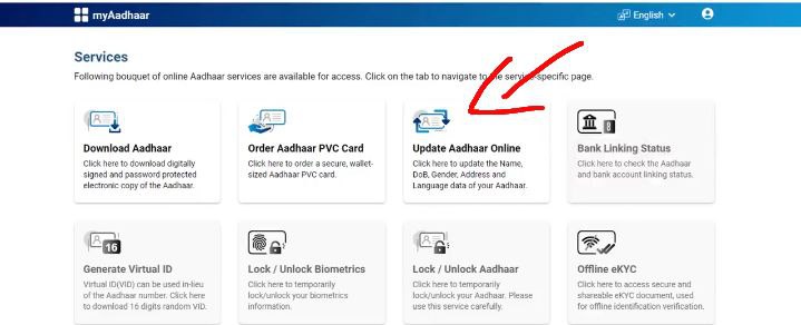I Login fel hnuah chuan Screen thar alo lang leh anga, Update Aadhaar Online kha i hmet leh ang.