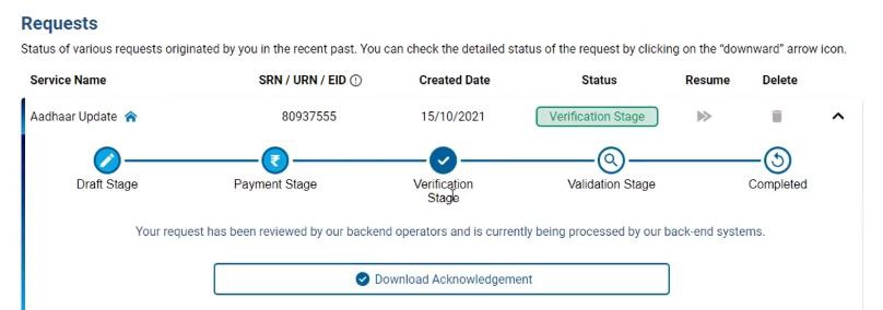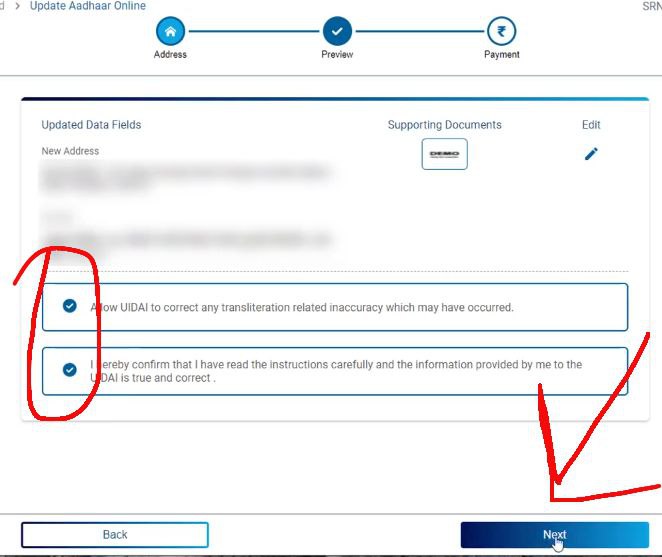 A tawi zâwngin a hnuhnung bera Completed tih thleng a in Tick ✓ hunah i Aadhaar-a Address chu a in Update fel tawh tihna a ni e.