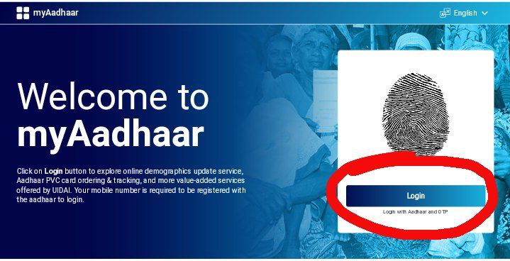 A hmasa berah chuan https://myaadhaar.uidai.gov.in ah hian luh tur a ni. Phone aṭanga i ti a nih chuan Desktop Site on tur. Welcome to myAadhaar tih lian pui i hmu anga, a kianga Fingerprint lem hnuaia LOG IN kha i hmet leh ang.